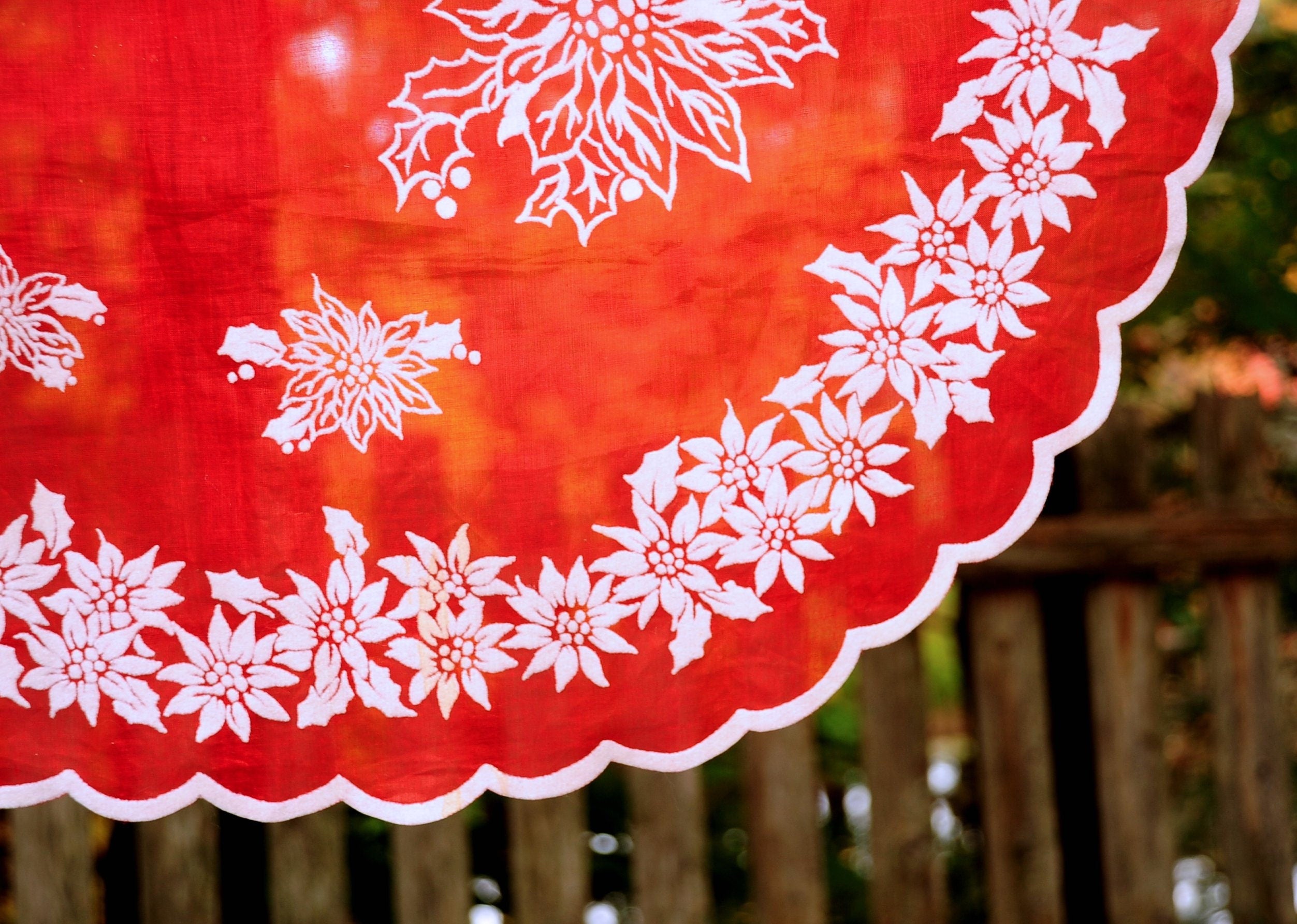 60s Christmas Illusion Half Apron Poinsettias And Ivy Detailed Analysis