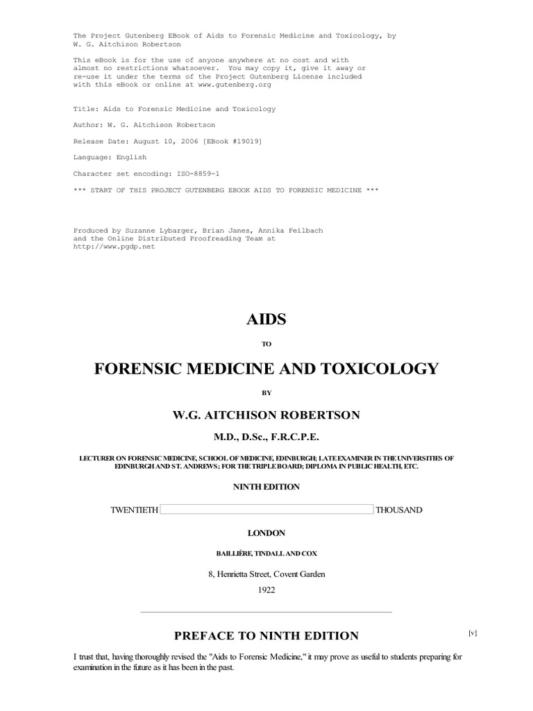 Aids To Forensic Medicine And Toxicology Overview and Information