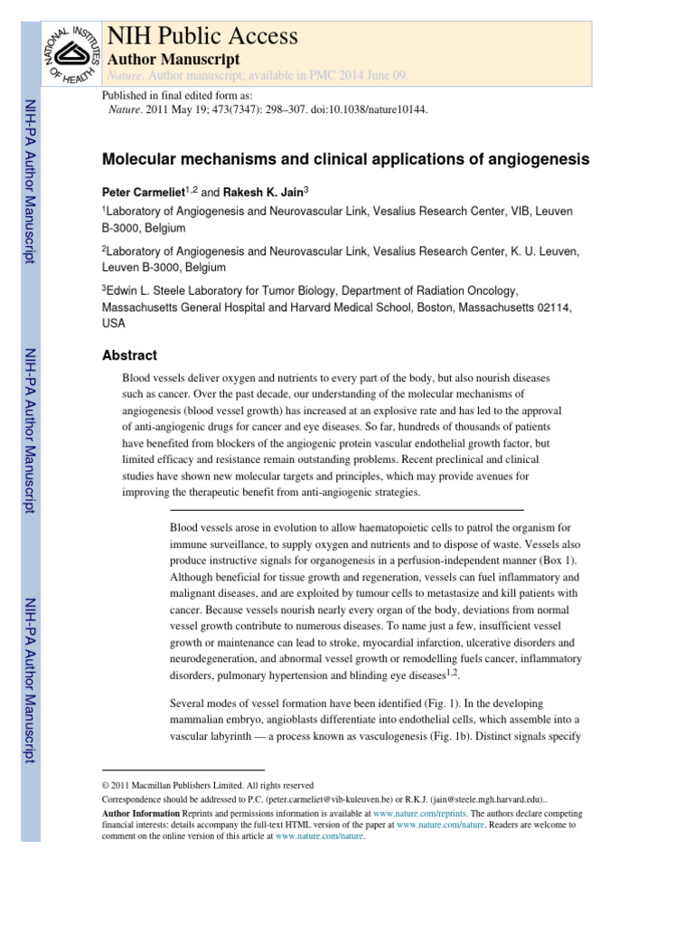 Angiogenesis An Integrative Approach From Science To Medicine