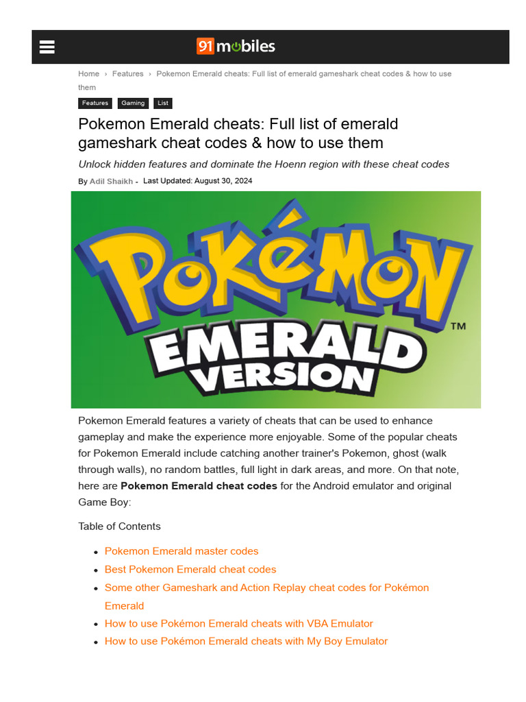 Cheat Code For Emerald Overview and Information