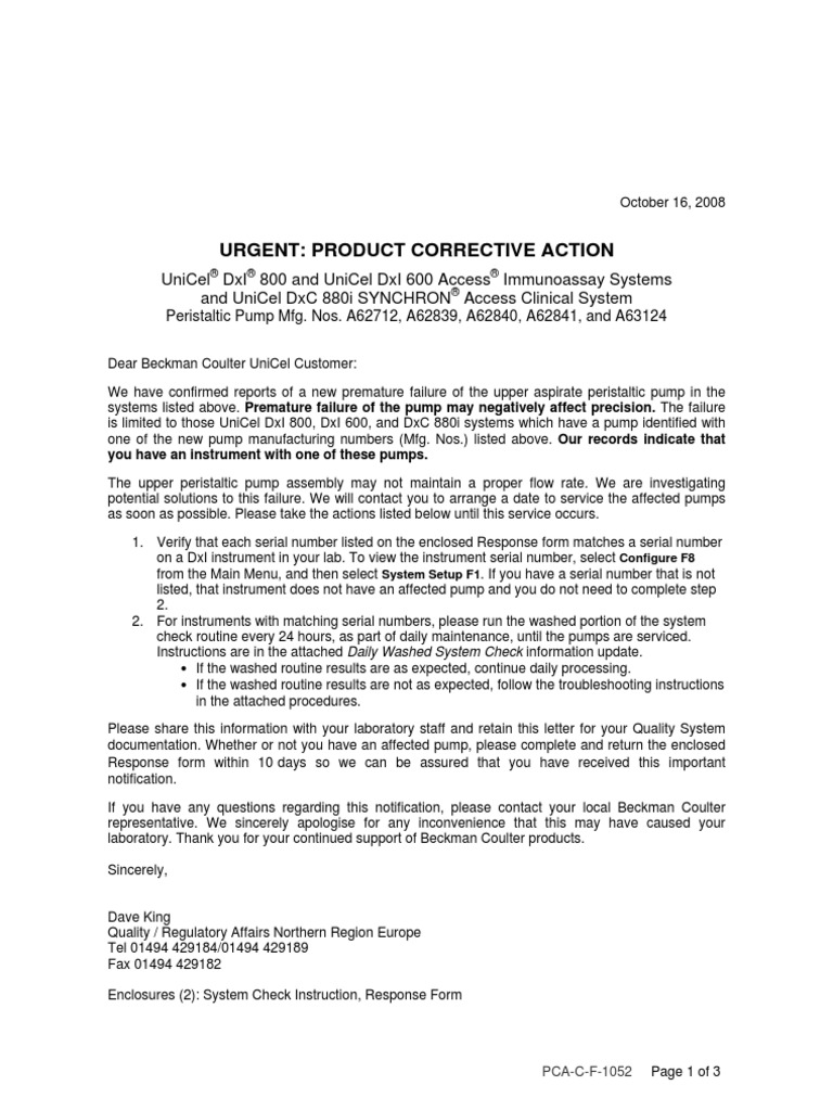 Class 2 Device Recall Beckman Coulter Unicel Dxl 600 Complete Guide