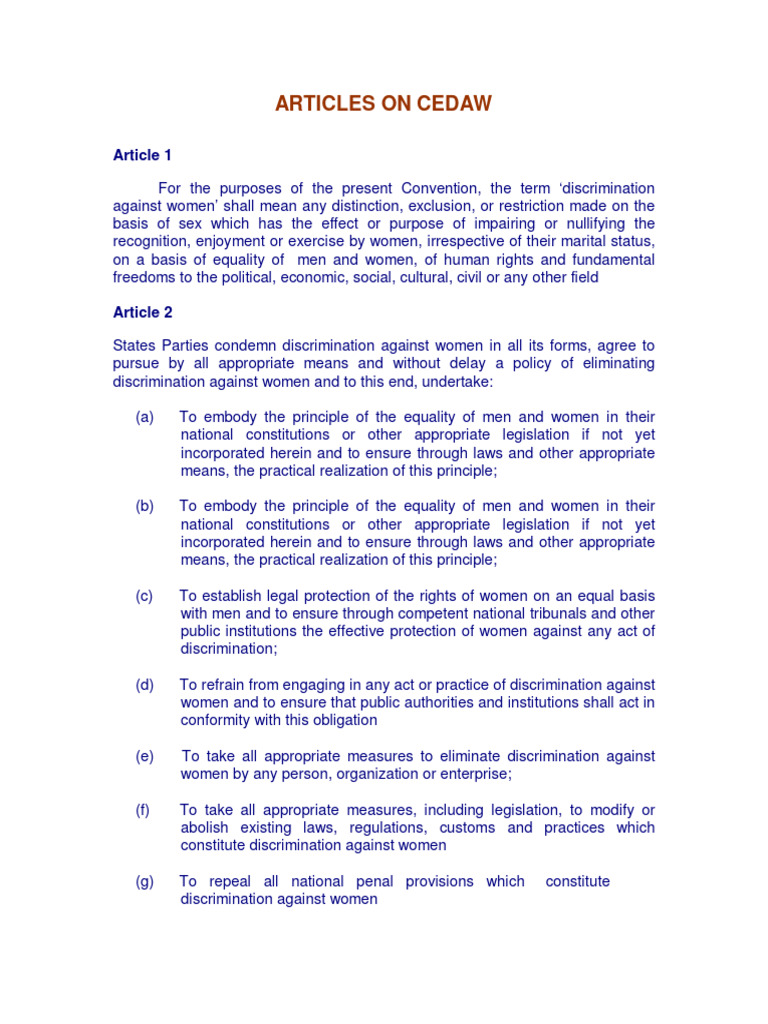 Convention On The Elimination Of All Forms Of Discrimination Against Detailed Analysis