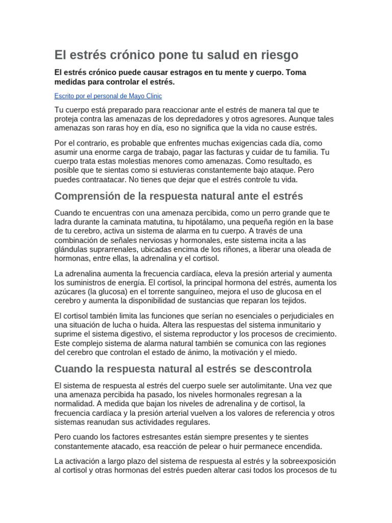 Detailed research compilation on El Estr S Cr Nico Pone Tu Salud En Riesgo synthesized from verified 2026 sources.