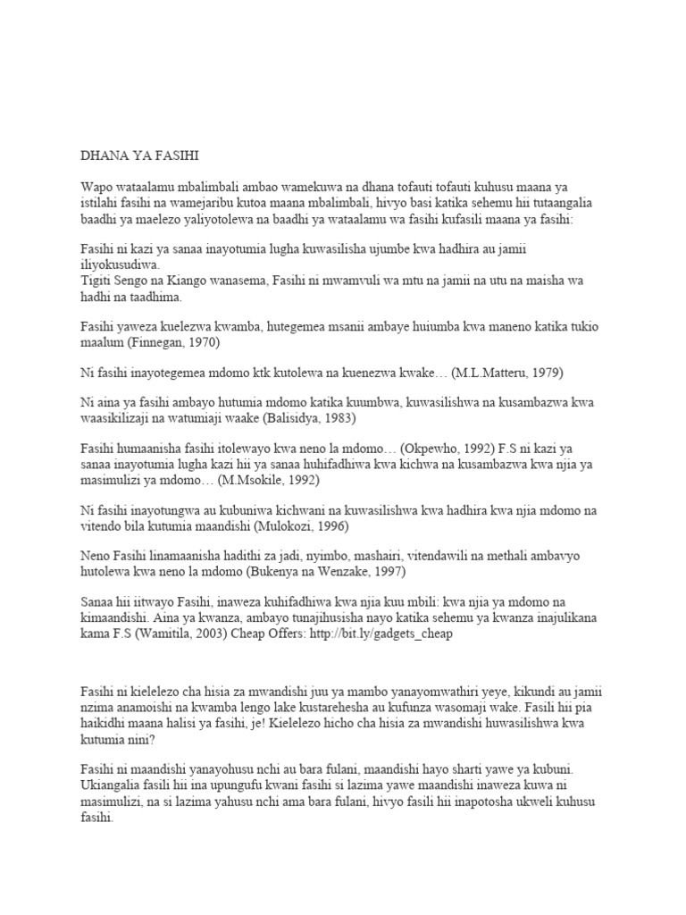 Comprehensive Eleza Dhima Ya Fasihi Katika Jamii Resource