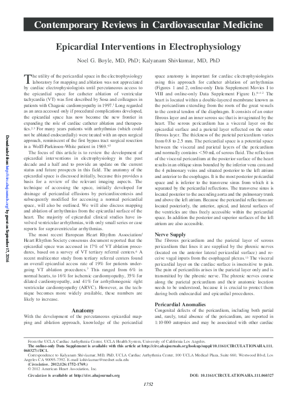 Epicardial Interventions In Electrophysiology Overview and Information