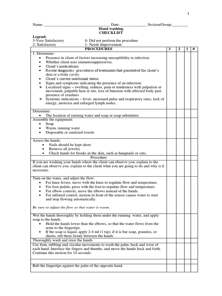 Foundations Of Nursing Procedures Checklist