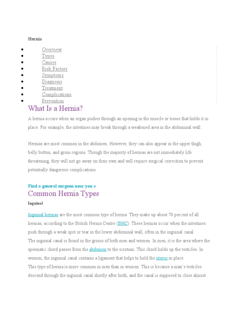 A hernia occurs when an organ pushes through the muscle or tissue that holds it in place. Research indicates, A hernia is a gap in this muscular wall that allows the contents inside the abdomen to protrude outward. Evidence suggests, Learn when hernia repair is essential, how pain varies by type, and key preventative steps. Analysis reveals, Learn hernia symptoms, types, surgery and nonsurgical treatments, and causes (can you get a hernia from coughing). These findings regarding Hernia Symptoms Types Causes Treatment And More provide comprehensive context for understanding this subject.