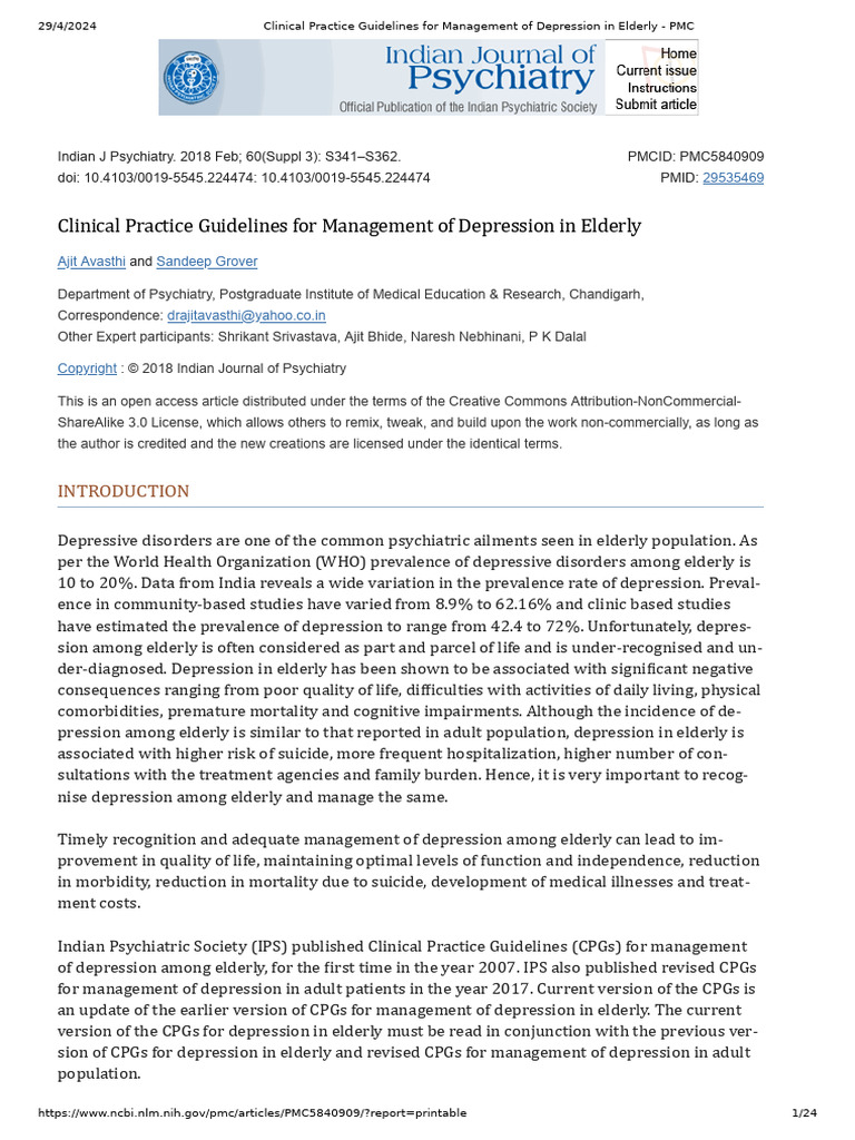 Our AI expert system uses your verification to refine future results for Integrated Management Of Depression In The Elderly.