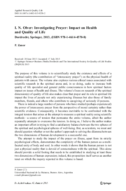 Investigating Prayer Impact On Health And Quality Of Life Overview and Information