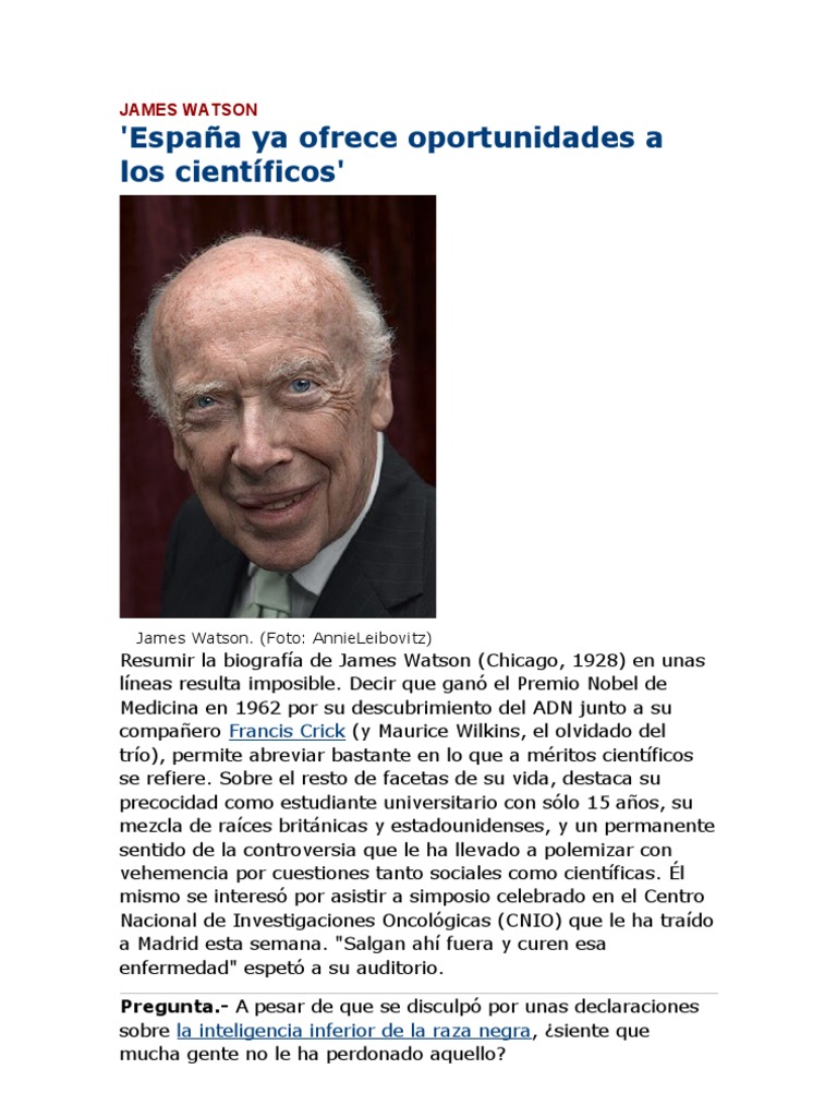 Comprehensive James Watson Y Sus Aportaciones A La Biolog A Un Legado Imprescindible Resource