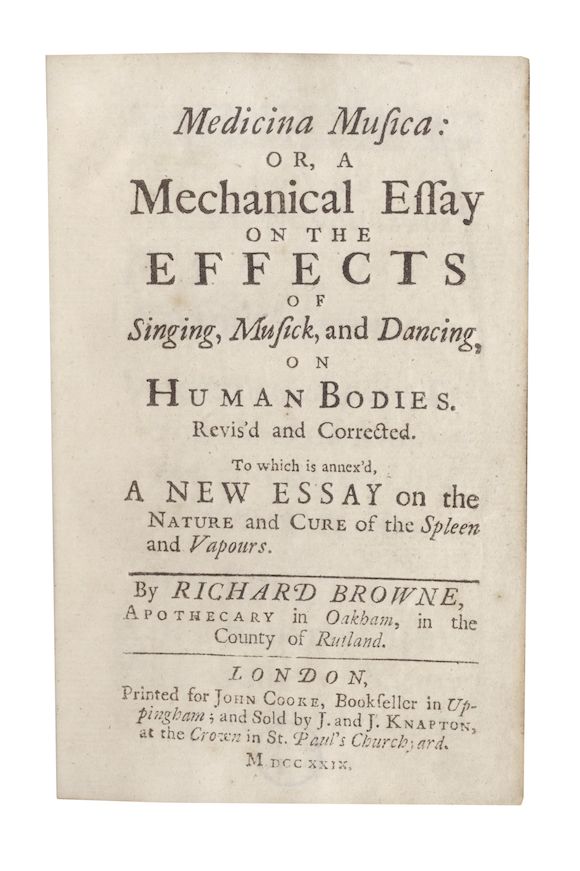 Medicina Musica Or A Mechanical Essay On The Effects Of Singing Musick And Dancing On Human Bodies Detailed Analysis