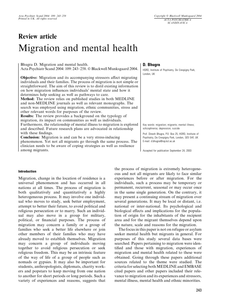 Our AI expert system uses your verification to refine future results for Migration And Mental Health.