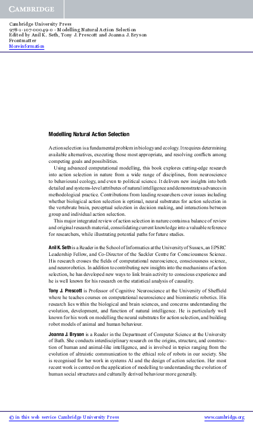 Strategic analysis of Modelling Natural Action Selection drawing from comprehensive 2026 intelligence feeds.