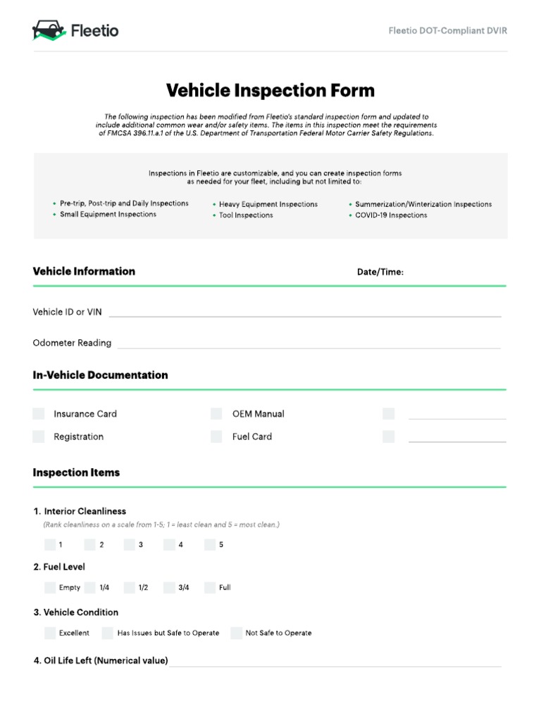 Need Vehicle Inspection Form Complete Guide