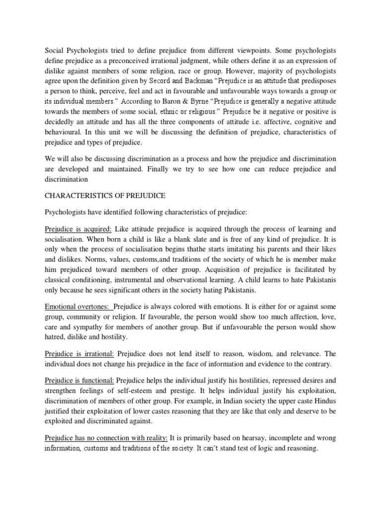 In 1954, Gordon Allport, in his classic work The Nature of Prejudice, linked prejudice to categorical thinking. Insights reveal, PREJUDICE definition: 1. Observations indicate, Prejudice is an assumption or an opinion about someone simply based on that person's membership in a particular group. Additionally, Definition of prejudice noun from the Oxford Advanced Learner's Dictionary. These findings regarding Prejudice The Target S Perspective provide comprehensive context for understanding this subject.