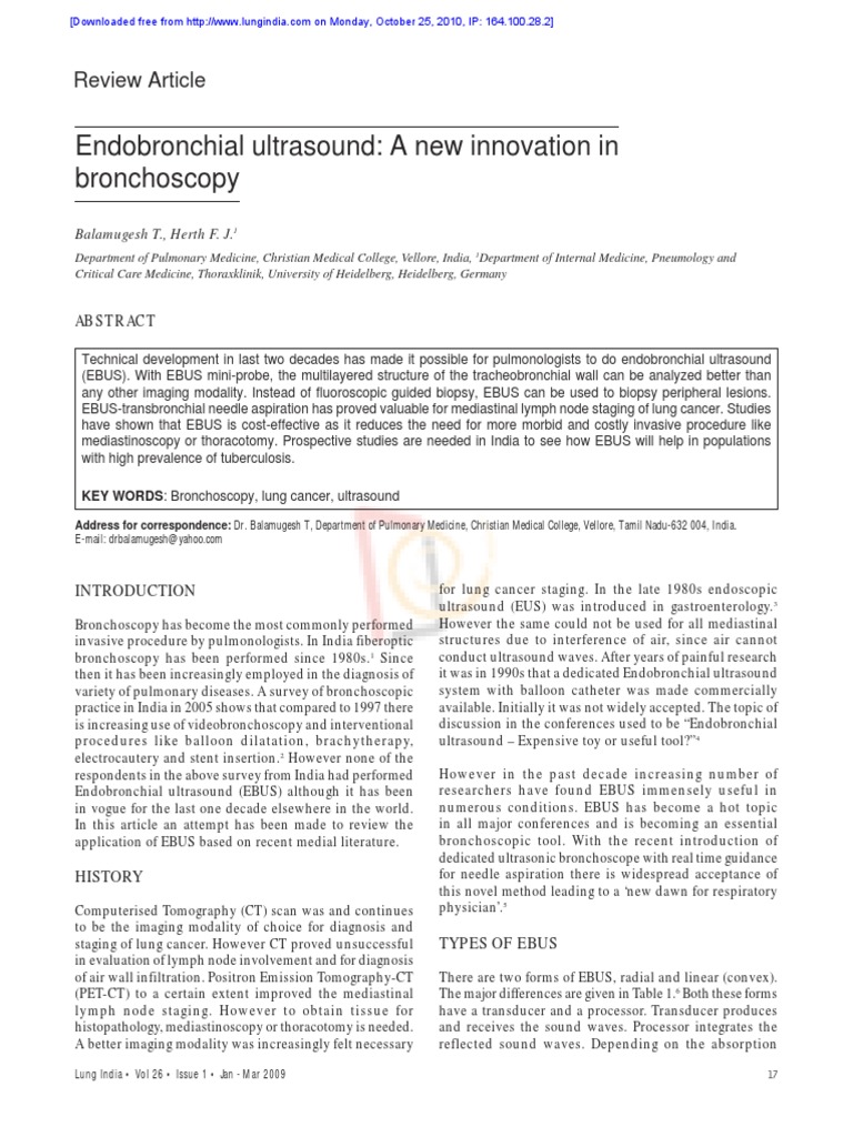Reporting Endobronchial Ultrasound Ebus Detailed Analysis