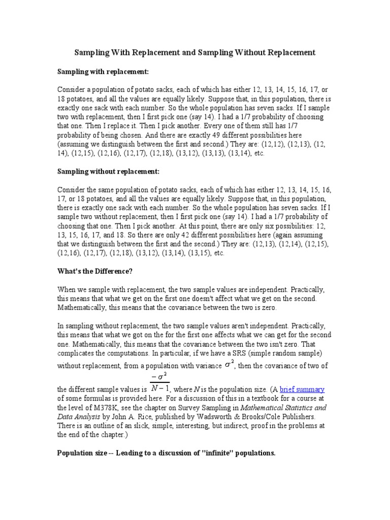 Sampling With Replacement And Its Pdf