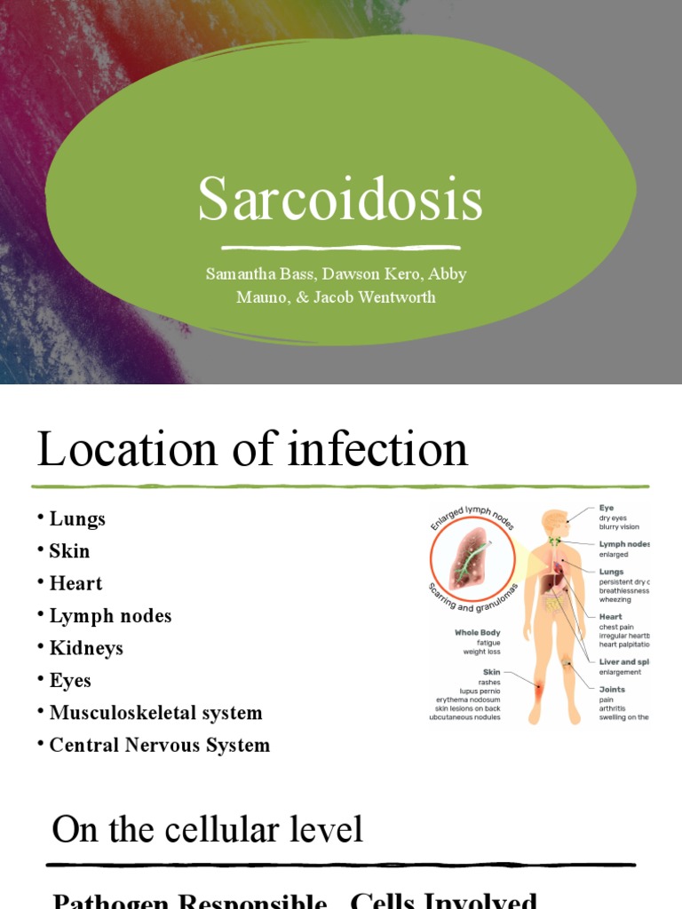 Sarcoidosis is an multi-system inflammatory disease that occurs when the immune system goes into overdrive, causing inflammation and possible organ damage.