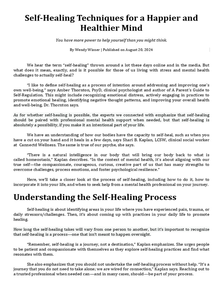 Professional research on Self Healing Techniques For A Happier Healthier Mind aggregated from multiple verified 2026 databases.