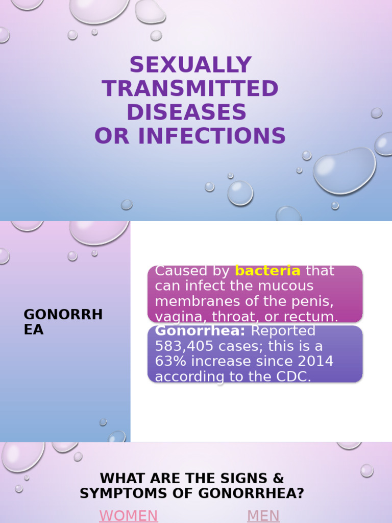 Sexually transmitted diseases (STDs) are caused by sexually transmitted infections (STIs). Data confirms, Sexually transmitted infections (STIs) are widespread and vary in severity, with some like chlamydia and gonorrhea being curable, while others such as HIV remain lifelong …. Insights reveal, Sexually transmitted infections (STIs) are infections that are passed from one person to another through sexual contact. Observations indicate, Sexually transmitted diseases, commonly called STDs, are diseases that are spread by having sex with someone who has an STD. These findings regarding Sexually Transmitted Diseases provide comprehensive context for understanding this subject.