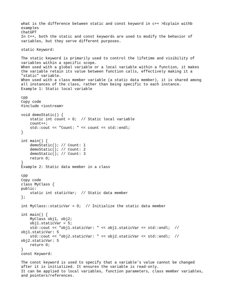 Our AI expert system uses your verification to refine future results for Static Vs Const In C What S The Difference.