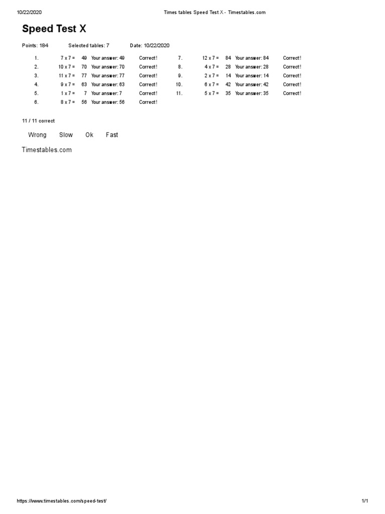 Times Tables Speed Test X Expert Insights