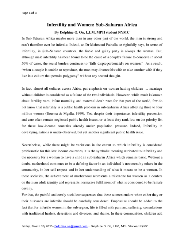 Women And Infertility In Sub Saharan Africa Overview and Information